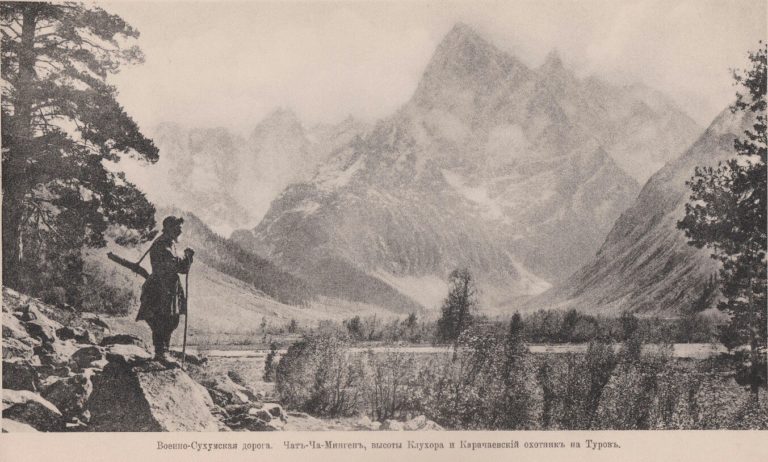 Карта показывала пункты перехода проезжей Дороги в тропу, с каменными казармами для рабочих в обоих точках — северной и южной. Нам надлежало ориентироваться на первую. Никто из Карачаев не соглашался быть нашим проводником, т.к. у них произошла размолвка с живущими на горах и по южному склону — сванетами. Это, пожалуй, самое древнее племя Кавказа, давно огрузиневшееся и принявшее от Грузии православие, но сохранившее свой язык и массу языческих верований и обычаев. Воинственные, смелые и физически очень крепкие, они составляли отборные отряды в Грузинской армии, но были отсталые в культурном отношении.